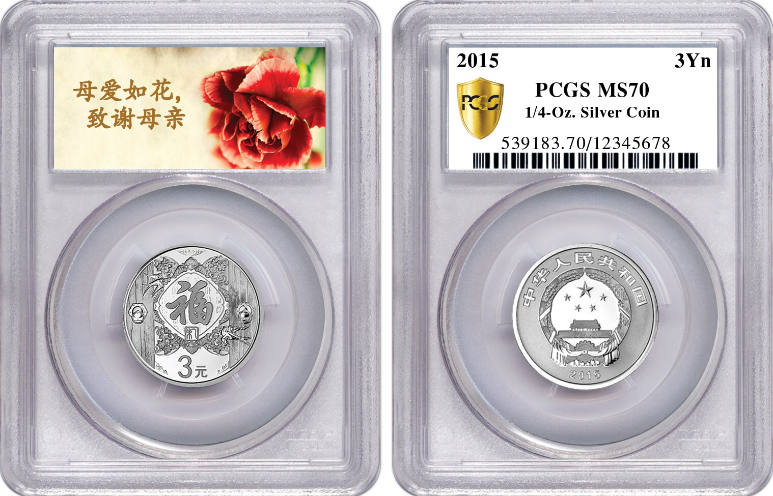 為此PCGS 特推出母親節(jié)祝福標(biāo)簽,為天下母親送去感謝和祝福。送評2015年賀歲福字幣,就可以免費獲得母親節(jié)限量標(biāo)簽。母親節(jié)標(biāo)簽上印有燦爛的康乃馨花朵圖案,還特附“母愛如花致謝母親”字樣。寓意吉祥的“福”字幣加上PCGS精心設(shè)計的祝福標(biāo)簽,這一定是母親節(jié)最真摯的禮物。