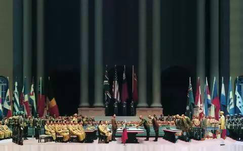 根本博率領(lǐng)幕僚廿一員舉行獻(xiàn)刀禮