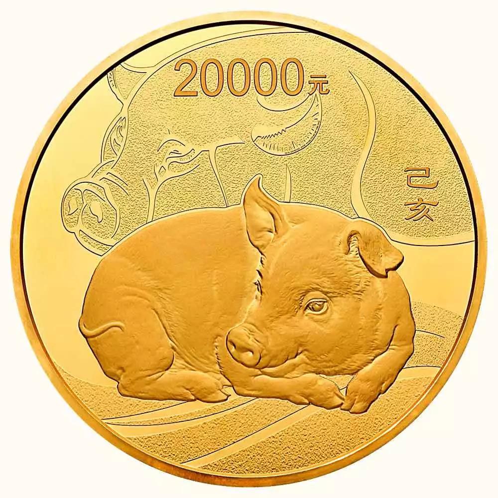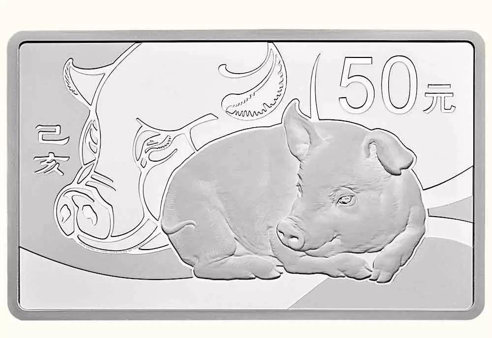 3克圓形金質(zhì)紀(jì)念幣、10克扇形金質(zhì)紀(jì)念幣、15克梅花形金質(zhì)紀(jì)念幣、150克長(zhǎng)方形金質(zhì)紀(jì)念幣、500克圓形金質(zhì)紀(jì)念幣、1公斤梅花形金質(zhì)紀(jì)念幣、2公斤圓形金質(zhì)紀(jì)念幣、10公斤圓形金質(zhì)紀(jì)念幣、30克圓形銀質(zhì)紀(jì)念幣、30克梅花形銀質(zhì)紀(jì)念幣、30克扇形銀質(zhì)紀(jì)念幣、150克長(zhǎng)方形銀質(zhì)紀(jì)念幣、1公斤圓形銀質(zhì)紀(jì)念幣等13枚金銀紀(jì)念幣背面圖案均為寫(xiě)實(shí)家豬造型,襯以裝飾豬首紋樣,并刊面額及“己亥”字樣。